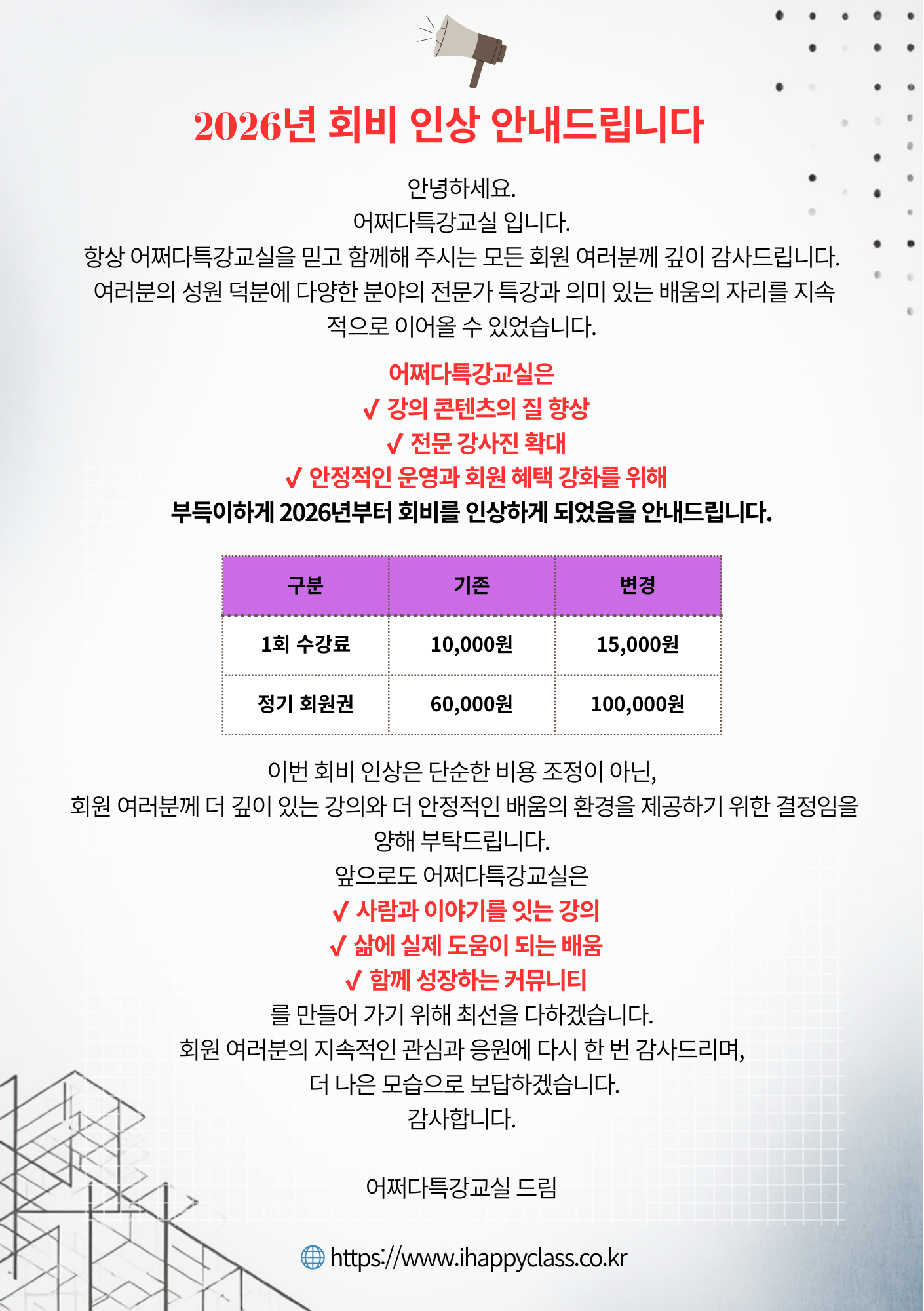 어쩌다특강교실 회비 인상건